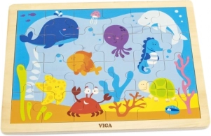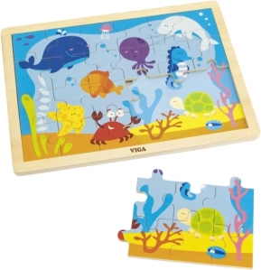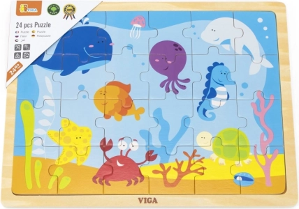 Wesołe drewniane puzzle z motywem podwodnego świata zapewniają idealną rozrywkę dla dzieci. Układanie z 24 elementów pomaga rozwijać umiejętności poznawcze i motoryczne.