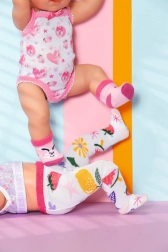 Wzbogać garderobę swojej lalki BABY born o te urocze rajstopy i skarpetki, które zostały zaprojektowane, aby zapewnić nie tylko ciepło, ale także możliwość modowego wyrażenia siebie. Dzięki swoim pastelowym kolorom stają się idealnym dodatkiem dla każdej małej mamy.