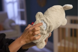Króliczek rytmicznie porusza główką i naśladuje ziewanie, co pomaga maluszkowi się rozluźnić i szybciej zasnąć.