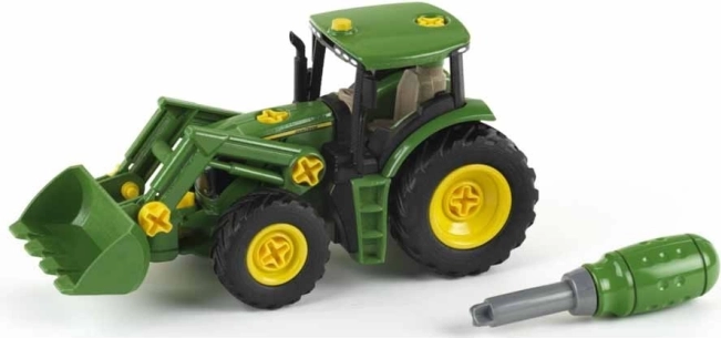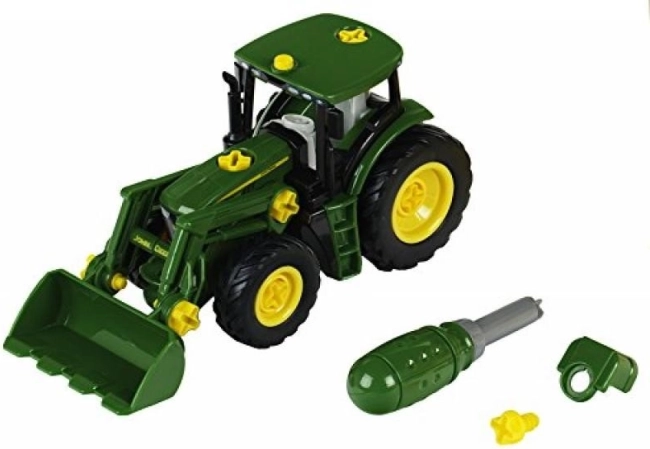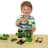 Ten zielono-żółty traktor z przednim ładowaczem ucieszy małych konstruktorów możliwością rozkładania i ponownego składania za pomocą dołączonego śrubokręta. Dzieci łatwo poćwiczą logikę, cierpliwość i precyzję podczas manipulowania elementami, kołami i śrubami.