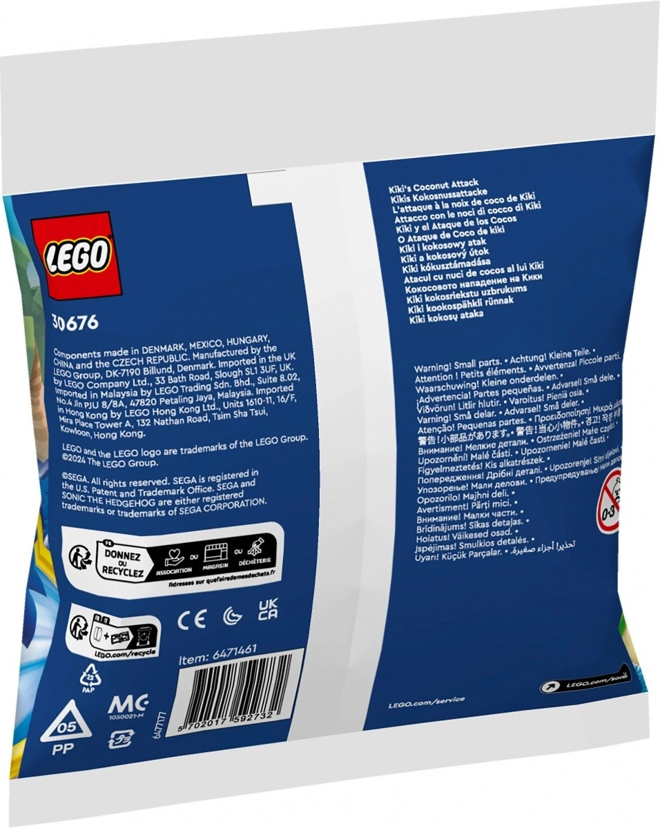 Zanurz się w pełną akcji zabawę w świecie SONIC THE HEDGEHOG! Zestaw LEGO polybag 30676 przedstawia wrogiego robota Kiki z ruchomymi kończynami oraz kokosowy atak dla dzieci od 6 lat. Kompaktowe opakowanie oferuje szybkie budowanie, gry scenkowe i kolekcjonerski dodatek dla fanów Sonica.