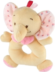 Ta różowa grzechotka w kształcie słonika została zaprojektowana z myślą o wygodnym chwytaniu i delikatnym potrząsaniu, które wydaje kojący dźwięk. Miękki plusz zachęca do przytulania i jest łagodny dla dziecięcych dziąseł podczas badania ustami.