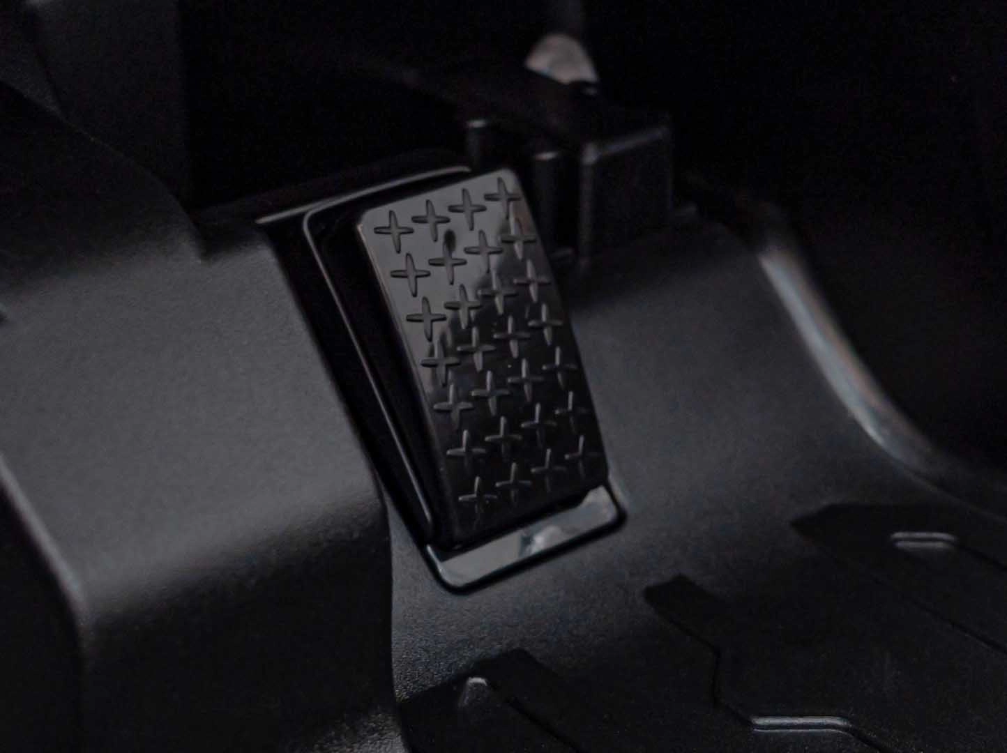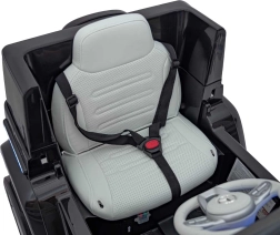 Dla maksymalnego bezpieczeństwa rodzice docenią sterowanie pilotem 2,4 GHz z trzema prędkościami i awaryjnym przyciskiem STOP. Samochodzik zachwyca bogatym oświetleniem – przednie i tylne LED, boczne podświetlenie nadwozia oraz podświetlane tylne koło zapasowe. Wnętrze z tapicerowanym siedziskiem z eko skóry, pasami bezpieczeństwa i panelem multimedialnym (MP3, USB, Bluetooth, AUX) zapewnia komfort i zabawę.