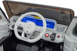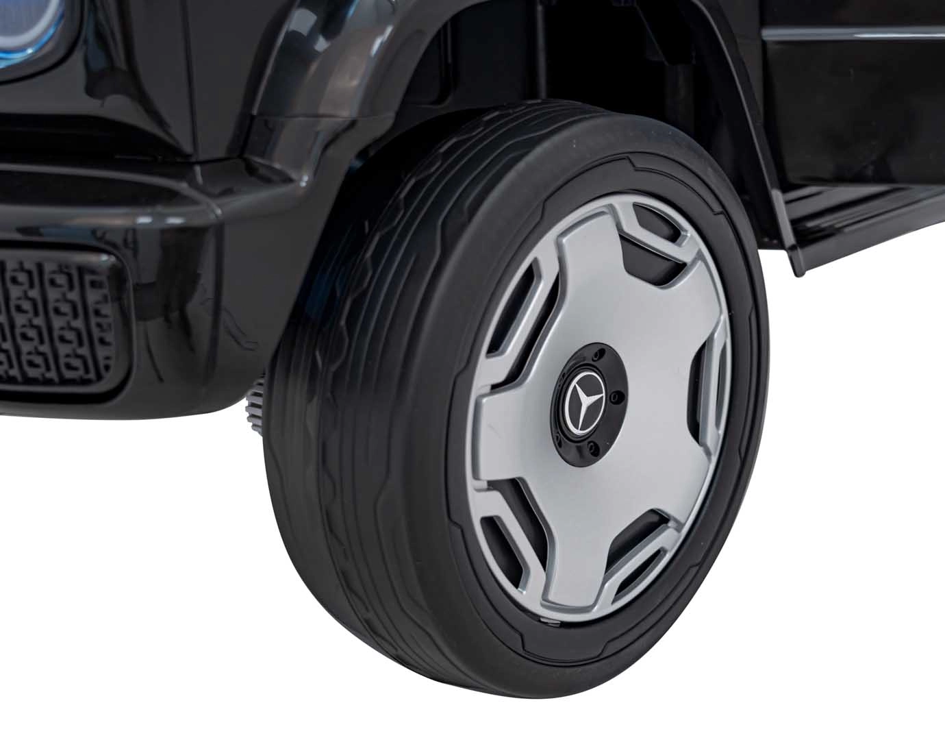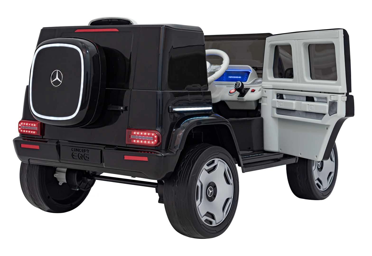 Podaruj dzieciom autentyczne wrażenia z jazdy z elektrycznym samochodzikiem MERCEDES‑BENZ EQG. Dwa wydajne napędy (2×20 W + 2×45 W) i płynny start gwarantują komfortową jazdę do przodu i do tyłu, tylne zawieszenie dba o stabilność w terenie, a duże, miękkie koła EVA (26×10 cm) świetnie tłumią nierówności.