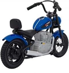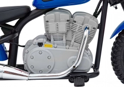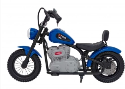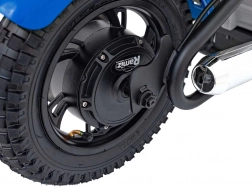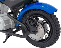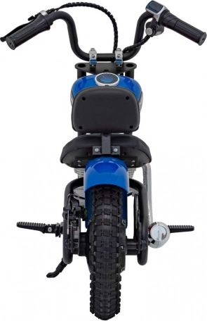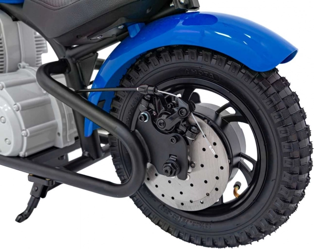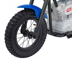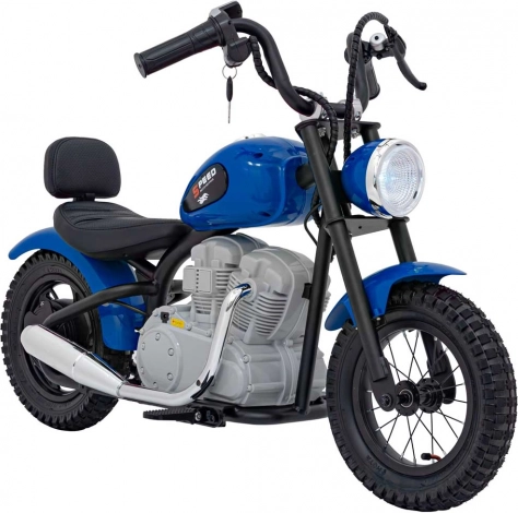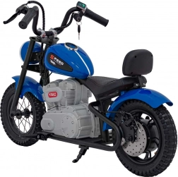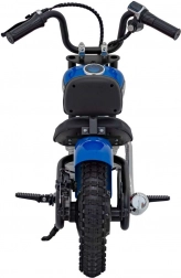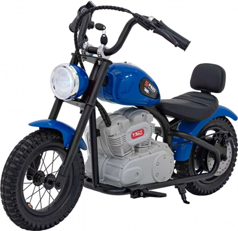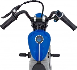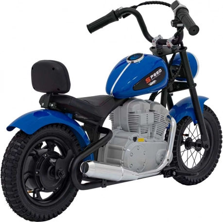 Stylowy dziecięcy elektryczny motocykl w niebieskim kolorze oferuje realistyczne wrażenia z jazdy dzięki bezszczotkowemu silnikowi 250 W, baterii 24 V / 7 Ah, pompowanym kołom 33 × 8 cm oraz przedniej lampie LED. Wygodne siedzenie z ekoskóry i płynny start zapewniają bezpieczeństwo i komfort. Do tego wskaźnik poziomu naładowania oraz dzwonek dla jeszcze większej frajdy.