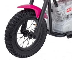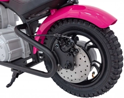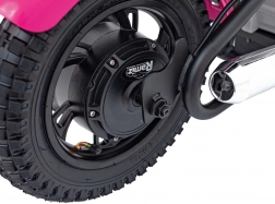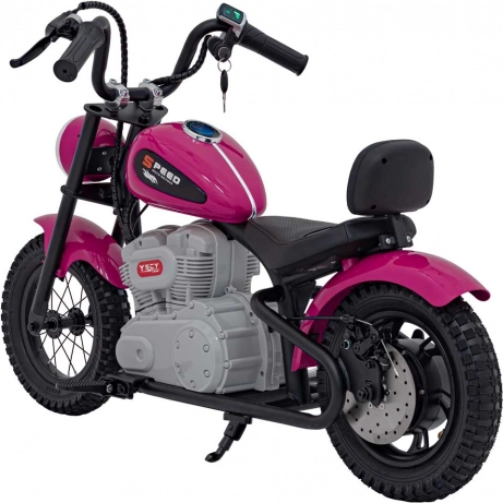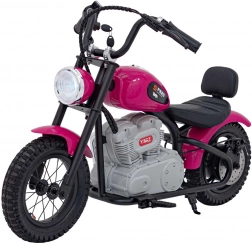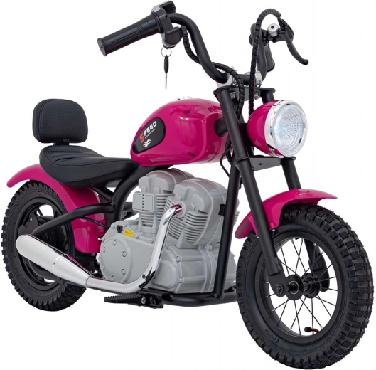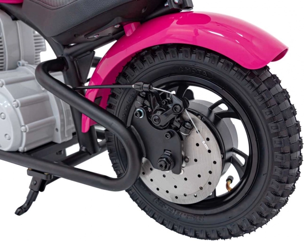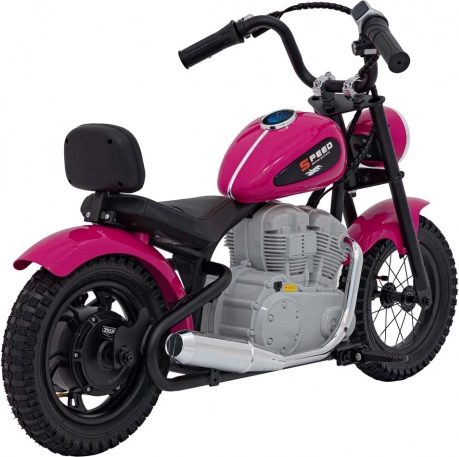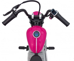 Elektryczny motocykl dla dzieci SPEED Power w kolorze różowym łączy atrakcyjny design choppera z solidną konstrukcją i wygodnym wyposażeniem. Dzięki mocnemu silnikowi bezszczotkowemu 250 W oraz akumulatorowi 24 V / 7 Ah mali kierowcy mogą cieszyć się płynną, pewną jazdą, a szerokie pompowane koła 33 × 8 cm zapewniają stabilność na różnych powierzchniach.