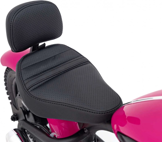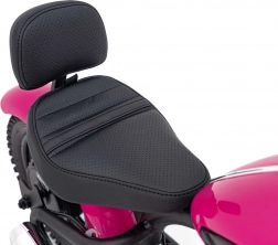 Motocykl wyposażono w przednie światło LED, wskaźnik stanu baterii i dzwonek. Miękkie siedzisko z ekoskóry z oparciem zapewnia komfort nawet podczas dłuższych przejażdżek. Płynny start pomaga dzieciom bezpiecznie ruszać bez szarpnięć. Maksymalne obciążenie do 80 kg podkreśla solidną konstrukcję.