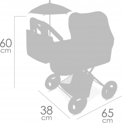 Parasol, odpinana torba, pokrowiec gondoli, materacyk i dolny kosz – wszystko do wygodnego wożenia lalek.