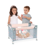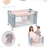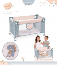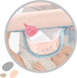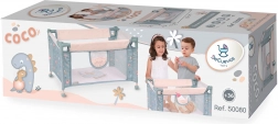 Łóżeczko turystyczne dla lalek COCO to piękny dodatek do dziecięcego pokoju i praktyczny towarzysz w podróży. Dzięki solidnej ramie z metalu i plastiku oraz tekstylnym bokom z siateczką jest lekkie, bezpieczne i dobrze wentylowane. Stonowane szaroniebieskie wykończenie z motywem uroczej małej dinozaurzycy współgra z pozostałymi akcesoriami kolekcji.
