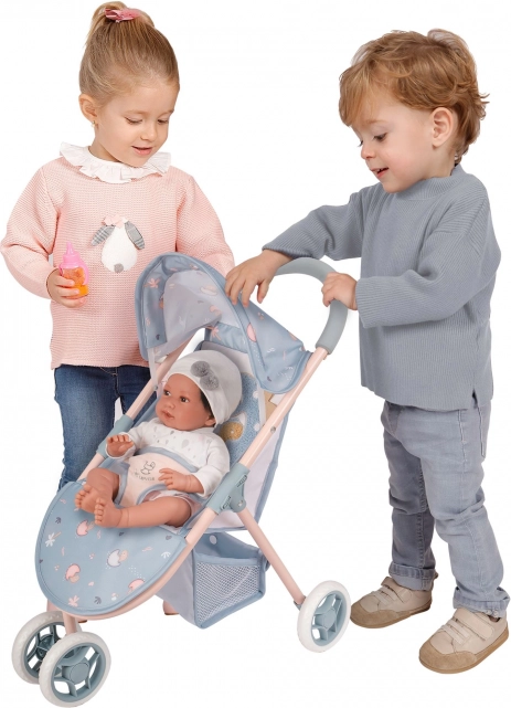 Obrotowe przednie podwójne koło ułatwia skręcanie, dolny koszyk zapewnia praktyczną przestrzeń do przechowywania, a trzypunktowy pas bezpiecznie utrzyma lalkę do wielkości 46 cm. Kompaktowe wymiary 55 × 48 × 33 cm (wys. × gł. × szer.) gwarantują łatwe przenoszenie i przechowywanie.