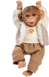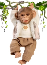 To realistycznie wykonane małpiątko wnosi dzieciom mnóstwo radości i wyobraźni podczas zabawy. Dzięki miękkiemu materiałowemu ciałku przyjemnie się przytula, a winylowa główka i kończyny z pięknymi detalami wyglądają jak żywe. Małpka jest pozycjonowana – łatwo ją posadzisz lub zawiesisz za ręce bądź nogi, dzięki czemu stanie się ulubioną towarzyszką i dekoracją dziecięcego pokoju.