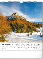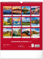 Odkryj piękno Słowacji przez cały rok z eleganckim kalendarzem ściennym na rok 2025 w formacie 30 × 34 cm. Każdy miesiąc zdobią efektowne fotografie zabytków przyrody i kultury, uzupełnione o słowackie kalendarium z wyróżnionymi świętami i niedzielami. Idealny wybór dla miłośników podróży, do domu i biura.