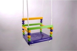 Bezpieczna i wygodna huśtawka dziecięca dla najmłodszych z przednią barierką bezpieczeństwa. Idealna do ogrodu i do domu, dostępna w kolorach zielonym, fioletowym i niebieskim dla radosnej zabawy każdego dnia.