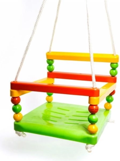 Świetny wybór dla rodzin poszukujących trwałej i łatwej w utrzymaniu huśtawki w radosnych kolorach. Odpowiednia do codziennej zabawy w ogrodzie lub we wnętrzu (w zależności od sposobu zawieszenia).