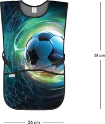 Ten fartuch dziecięcy to doskonałe uzupełnienie dla każdego dziecka, które kocha tworzyć. Z dynamicznym projektem piłkarskim w niebiesko-zielonych tonach oferuje nie tylko estetykę, ale i praktyczność. Fartuch posiada dwie kieszenie w dolnej części, które są idealne do przechowywania materiałów plastycznych lub narzędzi pracy.