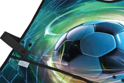 Świeży i efektowny projekt z piłką nożną i w niebiesko-zielonych tonacjach.