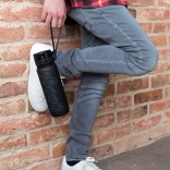 Butelka wyposażona jest w zakrętkę z blokadą, która zapobiega wszelkiemu wyciekaniu płynów, co sprawia, że użytkowanie jest całkowicie bezproblemowe.