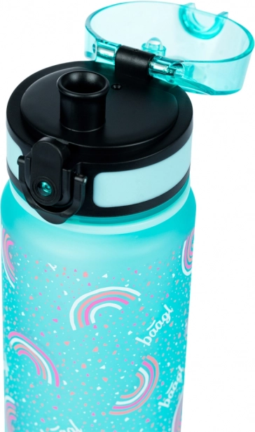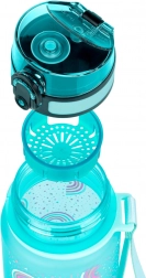 Ta butelka na picie marki BAAGL jest wykonana z certyfikowanego tritanowego materiału, który jest bezpieczny dla zdrowia i nie zawiera BPA, PVC ani ftalanów. Jest wyposażona w zamykana pokrywkę, co zapobiega wyciekom napoju i umożliwia łatwe użycie. Sitko wewnątrz butelki pozwala na użycie z owocami czy herbatą, idealne do lemoniad. Praktyczny pasek ułatwia noszenie butelki.