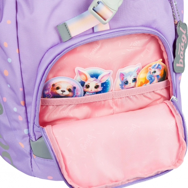 Jednokomorowe wnętrze z kieszenią na teczki oraz przednią kieszenią na zamek pozwala na łatwą organizację wszystkich przyborów szkolnych.