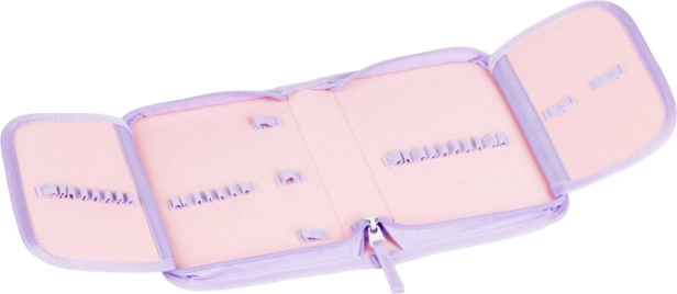 W skład zestawu wchodzi jednopoziomowy piórnik z dwiema klapkami (bez wyposażenia) oraz solidny worek z kieszenią na kapcie lub rzeczy sportowe. Worek ma karabińczyk do przypięcia do plecaka, zmywalny materiał i dolną kieszonkę na zamek. Cały zestaw utrzymany jest w atrakcyjnym wzornictwie Pupile, które dzieci pokochają.