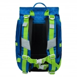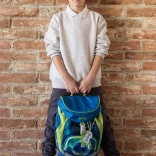 Plecak ma jednokomorowe ułożenie dla łatwej orientacji oraz przednią kieszeń na zamek do bezpiecznego przechowywania pudełka na drugie śniadanie. Wytrzymałe materiały i elementy odblaskowe przynoszą bezpieczeństwo i długą żywotność.
