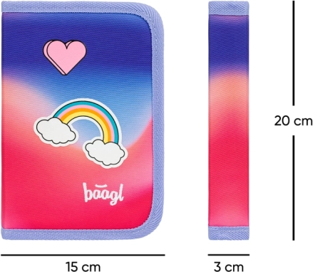 Szkolny zestaw BAAGL Airy Tęcza obejmuje stylowy i ultralekki plecak, który nadaje się dla dzieci od pierwszej klasy szkoły podstawowej. Plecak wyróżnia się ergonomicznie wyprofilowanymi plecami z SYSTEMEM AIRFLOW ERGO dla maksymalnej oddychalności. Szelki są w pełni regulowane, co zapewnia indywidualne dopasowanie do każdej sylwetki.