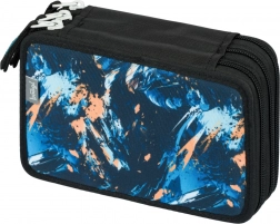 Piórnik wyróżnia się sportowym designem motocross w niebiesko‑czarnych tonach i jest zamykany na wysokiej jakości zamki dla bezpiecznego przechowywania. Wewnętrzne elastyczne uchwyty są dopasowane także do grubszych przyborów do pisania, dzięki czemu wszystko pozostaje na swoim miejscu.