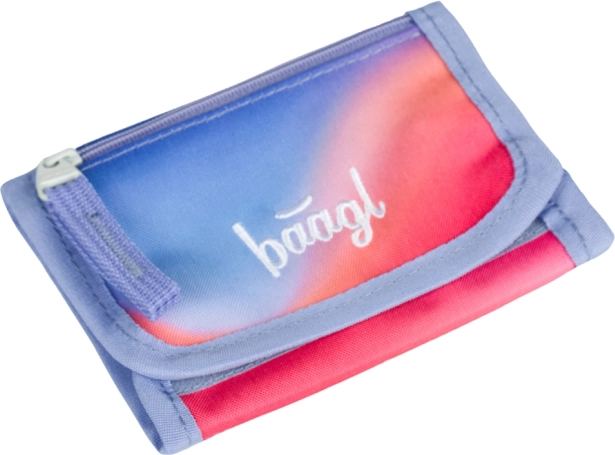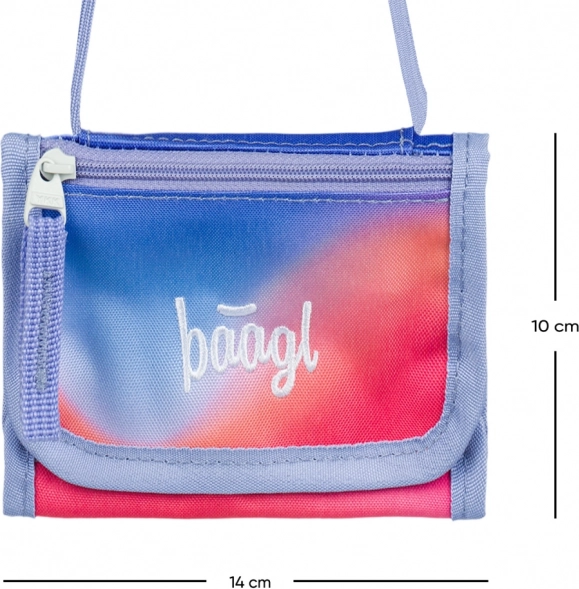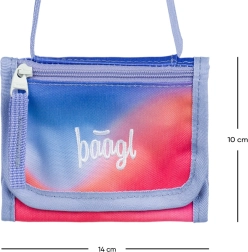 Praktyczny i stylowy portfel Baagl na szyję w czerwonym, tęczowym wzorze jest idealny dla dzieci i nastolatków. Oferuje mocny i wytrzymały materiał, praktyczny sznurek do zawieszenia oraz bezpieczne zamknięcie na rzep, uzupełnione o kieszonkę na drobne na zamek.