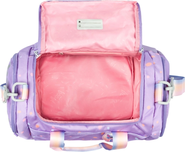 Odpinany pasek crossbody łatwo dopasujesz do wzrostu dziecka. Torbę można nosić na ramieniu i w dłoni dzięki solidnym uchwytom.