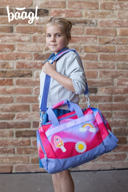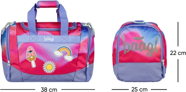 Lekka i stylowa dziecięca torba sportowa BAAGL w motywie tęczy jest idealna na zajęcia, WF oraz jako bagaż podręczny. Oferuje pojemną komorę główną z szeroką klapą, oddzielną kieszeń na obuwie, odpinany, regulowany pasek oraz wzmocnione, wodoodporne dno. Za płynne otwieranie odpowiadają niezawodne zamki YKK, a elementy odblaskowe zwiększają bezpieczeństwo.