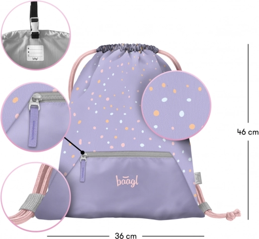 Stylowy i funkcjonalny worek Baagl Pupile to świetny wybór do codziennego noszenia obuwia, sprzętu sportowego czy na zajęcia. Trwały i zmywalny materiał łatwo utrzymać w czystości, a dolna kieszeń na zamek bezpiecznie pomieści drobiazgi, klucze lub chusteczki.