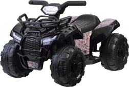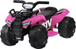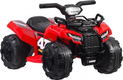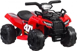 Kompaktowy dziecięcy quad na baterię oferuje łatwe sterowanie dla najmłodszych kierowców. Dzięki niskiej masie i niewielkim wymiarom jest idealny do mieszkania i na chodniki. Wyposażony w silnik 6V, akumulator 6V 4,5 Ah, jazdę do przodu, profilowane siedzisko oraz podnóżki. Uruchamianie następuje po naciśnięciu czerwonego przycisku na rączce, nie brakuje też efektów dźwiękowych i klaksonu.