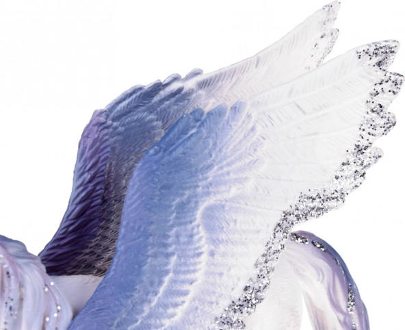Połączenie bieli i błękitu ze srebrnymi akcentami oraz bogato teksturowane skrzydła podkreślają czarujący charakter figurki.