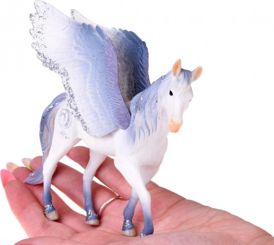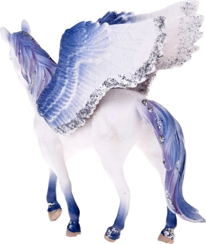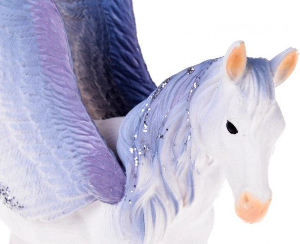 Ta elegancka figurka baśniowego pegaza jest stworzona do świata bajek. Precyzyjne wykonanie, realistyczne pióra na skrzydłach i połyskujące detale czynią z pegaza piękną dekorację i ulubionego towarzysza do wyimaginowanych zabaw. Dzięki kompaktowym wymiarom łatwo mieści się w dziecięcych dłoniach i zachęca do tworzenia własnych opowieści.