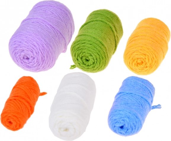 Sześć barwnych motków pobudza wyobraźnię i pozwala dopasować zabawki do wesołych, kontrastowych lub delikatnych tonów.