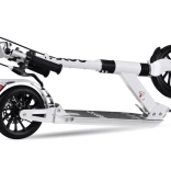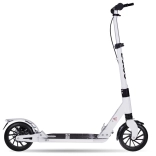 Uniwersalna miejska hulajnoga dla dzieci i dorosłych oferuje szybką i wygodną jazdę po asfalcie i mniej równych chodnikach. Dzięki składanej konstrukcji, amortyzacji oraz podwójnemu układowi hamulcowemu (ręczny hamulec tarczowy + nożny hamulec tylni) jest bezpieczna, praktyczna i łatwa do przenoszenia za pomocą paska na ramię. Duże koła 200 mm zapewniają stabilność i płynność podczas codziennych dojazdów.