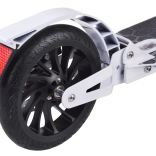 O Twoje bezpieczeństwo dba połączenie ręcznego hamulca tarczowego oraz tylnego hamulca ciernego zintegrowanego z błotnikiem i odblaskiem. Przednia amortyzacja tłumi nierówności, dzięki czemu jazda jest płynna i komfortowa nawet na bardziej chropowatej nawierzchni. Duże koła PU o średnicy 200 mm jadą szybko i gładko, a jednocześnie zapewniają doskonałą stabilność.