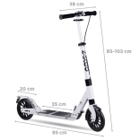 Ta solidna, składana hulajnoga aluminiowa jest stworzona do miasta. Regulowana kierownica w zakresie 83–103 cm, ergonomiczne gumowe chwyty i antypoślizgowy podest 35 × 15 cm gwarantują komfort i pewność podczas jazdy. Dzięki prostemu systemowi składania w kilka chwil przeniesiesz ją na ramieniu i przechowasz nawet w małej przestrzeni.