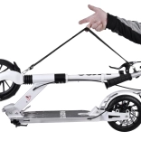 Mechanizm szybkiego składania i pasek na ramię pozwalają w kilka sekund złożyć hulajnogę, wziąć ją do ręki i przenieść w komunikacji miejskiej lub do biura.