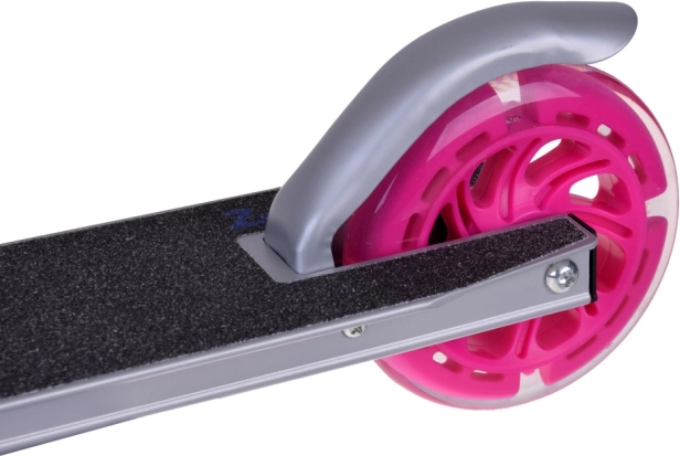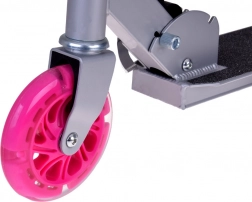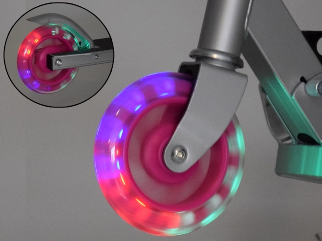 Ta składana dziecięca hulajnoga łączy niską wagę, stabilność i bezpieczeństwo. Koła świecą dzięki wbudowanym diodom LED podczas jazdy bez konieczności użycia baterii, co zwiększa widoczność i atrakcyjność. Konstrukcja z aluminium i stali jest solidna, a jednocześnie łatwa do przenoszenia, sprawdzi się w parku, na ścieżce rowerowej i na wyjeździe.