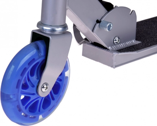 Lekka i wytrzymała składana hulajnoga dla dzieci z świecącymi kołami LED, regulowaną wysokością kierownicy i antypoślizgowym podestem. Idealna do zabawy i bezpiecznego poruszania się na zewnątrz, łatwo się składa i przenosi, ma hamulec nożny oraz praktyczną stopkę.