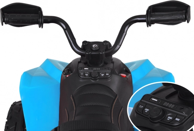 Obsługa jest prosta: uruchamianie odbywa się przyciskiem, start jest płynny, a po zwolnieniu pedału aktywuje się hamulec elektryczny. Na czytelnym panelu przełączysz przód/stop/tył i osobno włączysz oświetlenie. Zintegrowany moduł muzyczny oferuje wstępnie wgrane melodie, USB, MP3 oraz radio FM, dzięki czemu mały kierowca może cieszyć się jazdą z ulubioną muzyką.