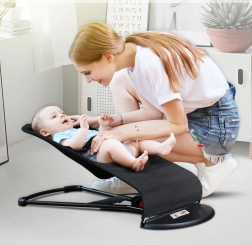 Ten wszechstronny dziecięcy leżaczek bujany zapewnia idealne miejsce do odpoczynku, zabawy i kołysania Twojego maluszka. Cechuje go elegancki czarny kolor, a wykonanie z połączenia bawełny, stali i poliestru gwarantuje trwałość i wygodę.