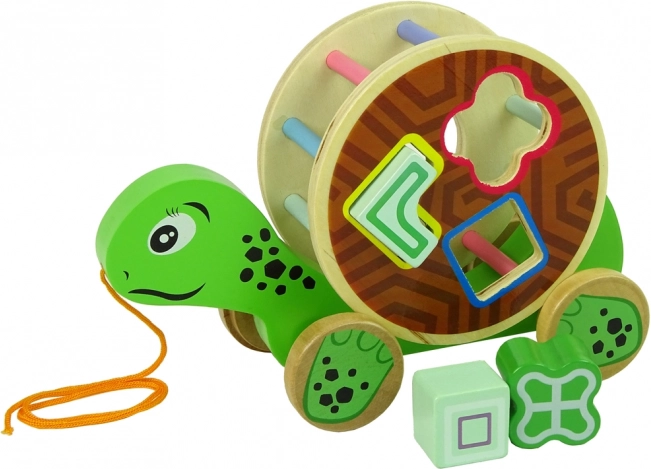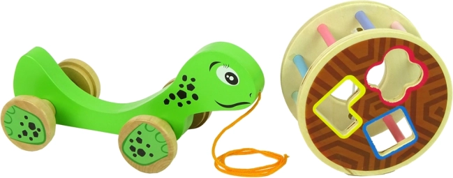 Drewniany żółw do ciągnięcia z sorterem to sprytna zabawka dla najmłodszych, łącząca ruch, rozwój motoryki małej i naukę kształtów. Kolorowy obrotowy bębenek z sorterem i 3 klockami trenuje logikę oraz koordynację oko–ręka, a sznurek i kółka zachęcają do aktywnej zabawy. Wykonany z wysokiej jakości drewna i bezpiecznie lakierowany.
