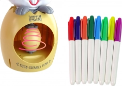 Uroczy króliczek jako stojak i pomocnik przy dekorowaniu zamieni malowanie pisanek w zabawę dla całej rodziny. W zestawie znajdziesz 3 plastikowe jajka, 8 kolorowych markerów oraz stojak w kształcie króliczka. Jajka są lekkie, bezpieczne i nietoksyczne, idealne do dziecięcej kreatywności i wielkanocnych dekoracji. Odpowiednie dla dzieci od 3 lat, certyfikat CE.