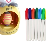 - Kompletny set – 3 jajka, 8 markerów i króliczek–stojak gotowe do tworzenia.