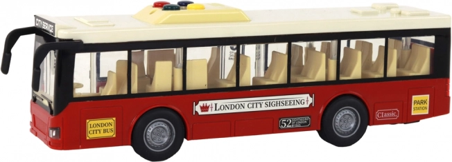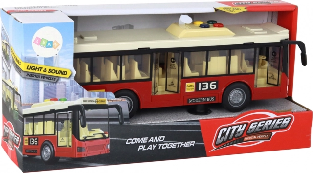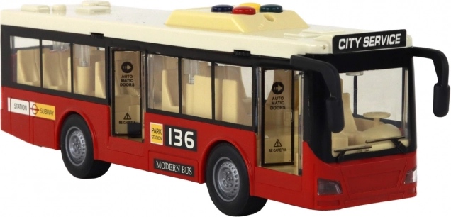 Czerwony miejski autobus na baterie ze światłami i dźwiękami 1:16