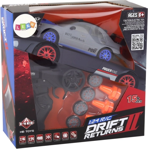 W komplecie znajduje się akumulator 3.7 V z kablem USB, poręczny pistoletowy kontroler oraz pachołki do ćwiczenia precyzji. Kompaktowe wymiary auta ułatwiają prowadzenie w domu i na zewnątrz, a wytrzymała konstrukcja zapewnia długą żywotność.