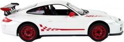Model samochodu Porsche wyróżnia się olśniewająco białym lakierem, który nadaje mu wyjątkowo luksusowy wygląd. Światła przyczyniają się do autentyczności i umożliwiają jazdę po ciemku.