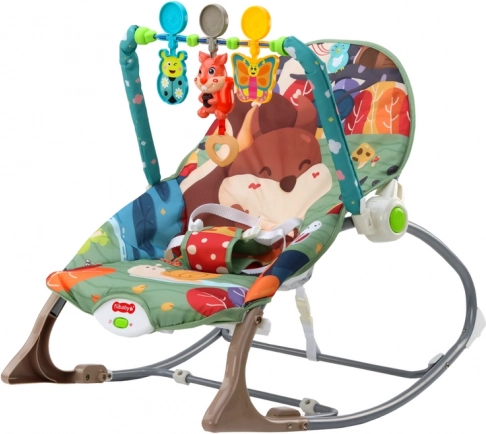 Huśtawka i leżaczek 2w1 to idealny wybór do codziennego wypoczynku i stymulującej zabawy maluszka. Delikatne wibracje ułatwiają zasypianie i uspokajają, a zawieszki na pałąku wspierają rozwój wzroku i motoryki. Po pociągnięciu serduszka przy lisie uruchamia się wesoła melodia, która rozwija słuch i naturalną ciekawość dziecka.